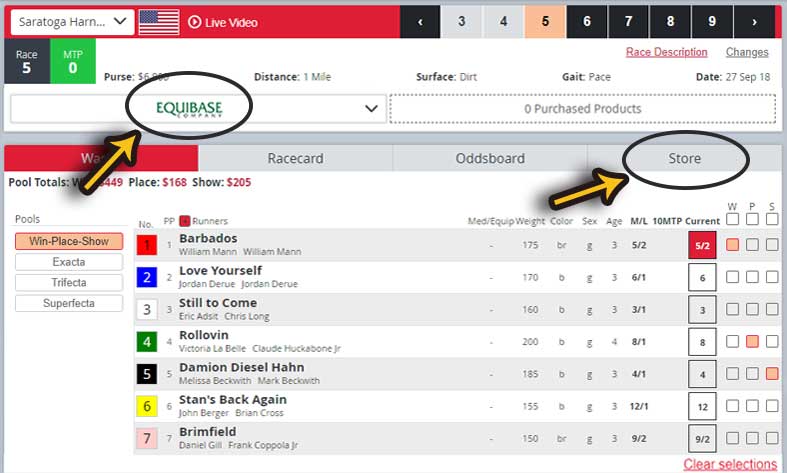 When handicapping products are available they will be shown under the track information on the Bet Pad and in the Store tab. Only products for today's action are available outside the Store tab.